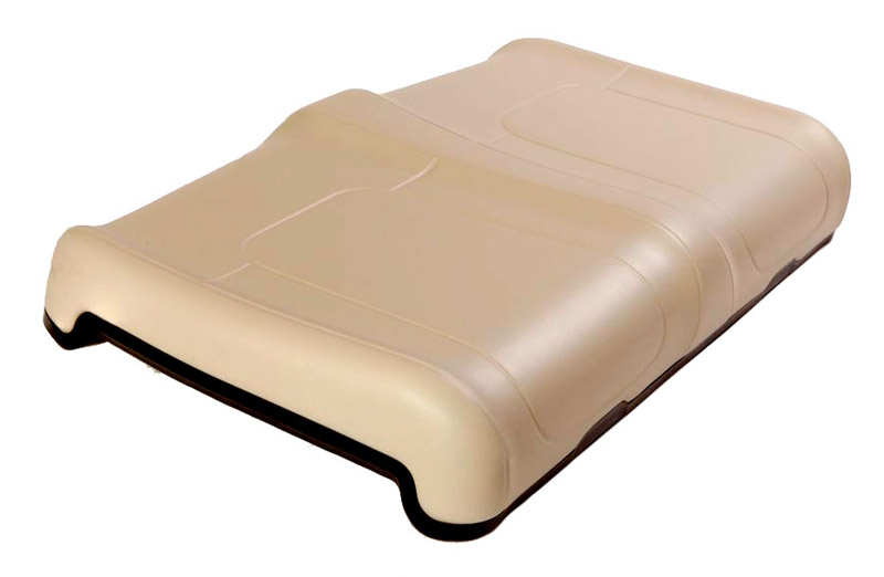 This makes it possible to produce intricate or ergonomic seat shapes without the “bridging” effect of the vinyl cover. Among other major advantages, these processes provide a seamless vinyl cover, for increased waterproofness, durability, antibacterial and antimicrobial resistance.